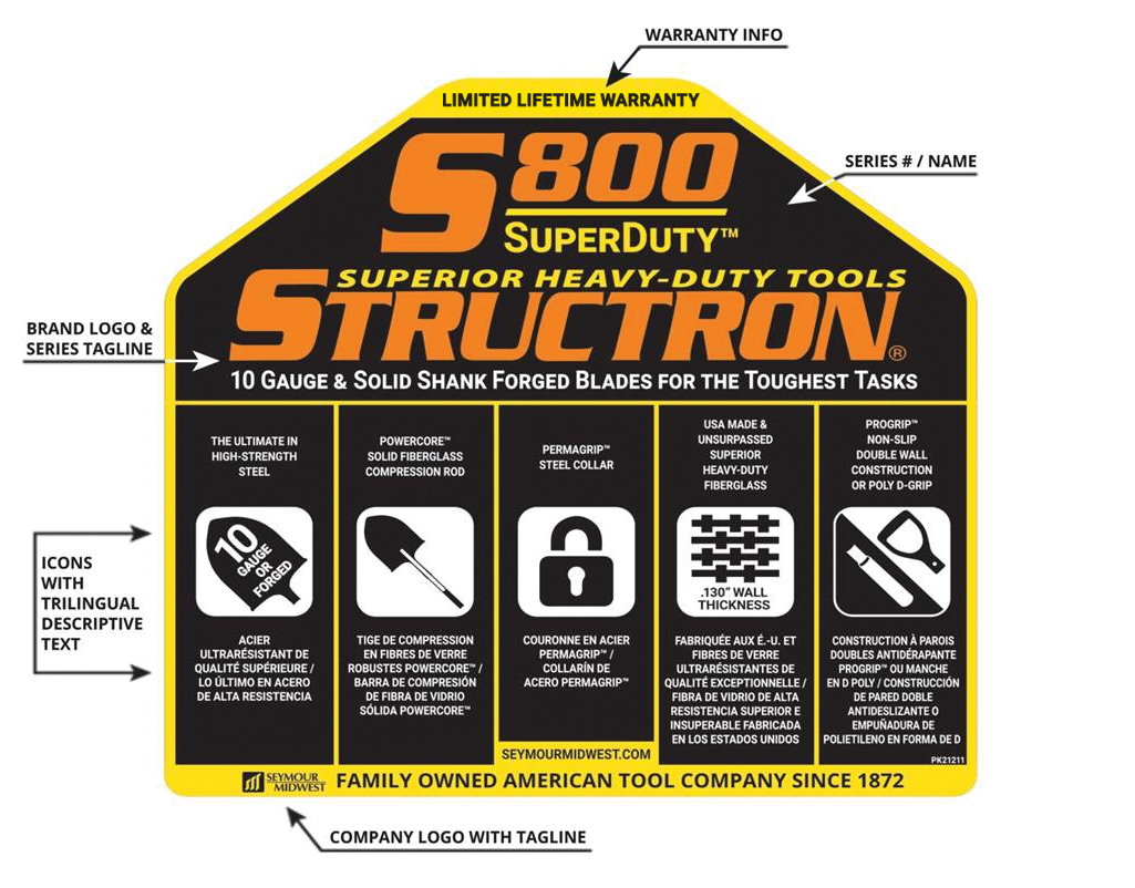 Seymour Spans the Globe: We’re proud to sell our product around the world and have updated all tools that feature artwork with trilingual English, Spanish & French descriptions to best meet the needs of the market segments and global customers we serve.