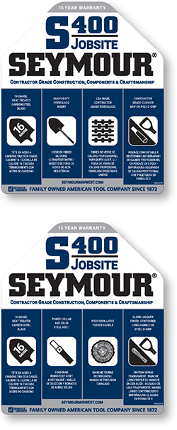 Dedicated labeling for both fiberglass and hardwood models ensures that at the point-of-purchase the product is clearly explained – nothing cookie-cutter about the labeling or the S400 Jobsite™ tools! Fiberglass tools feature: